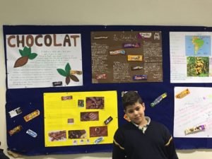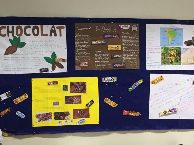 Charlie et la chocolaterie « Charlie et la chocolaterie » Livre passionnant qui a aiguisé la gourmandise des élèves de EB5. Très enthousiastes, ils ont exploité le chocolat sous plusieurs formes : Recherches, Power point, Maquettes, Dégustation : Chocolat chaud, gâteau, barres de chocolat.