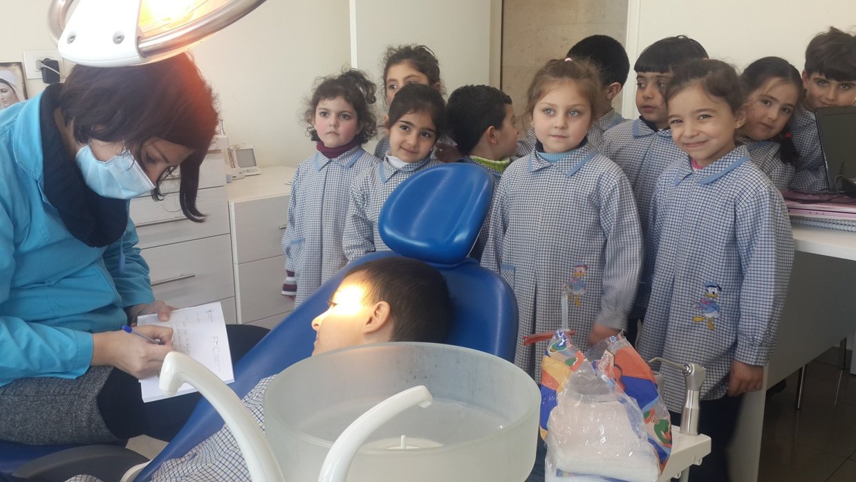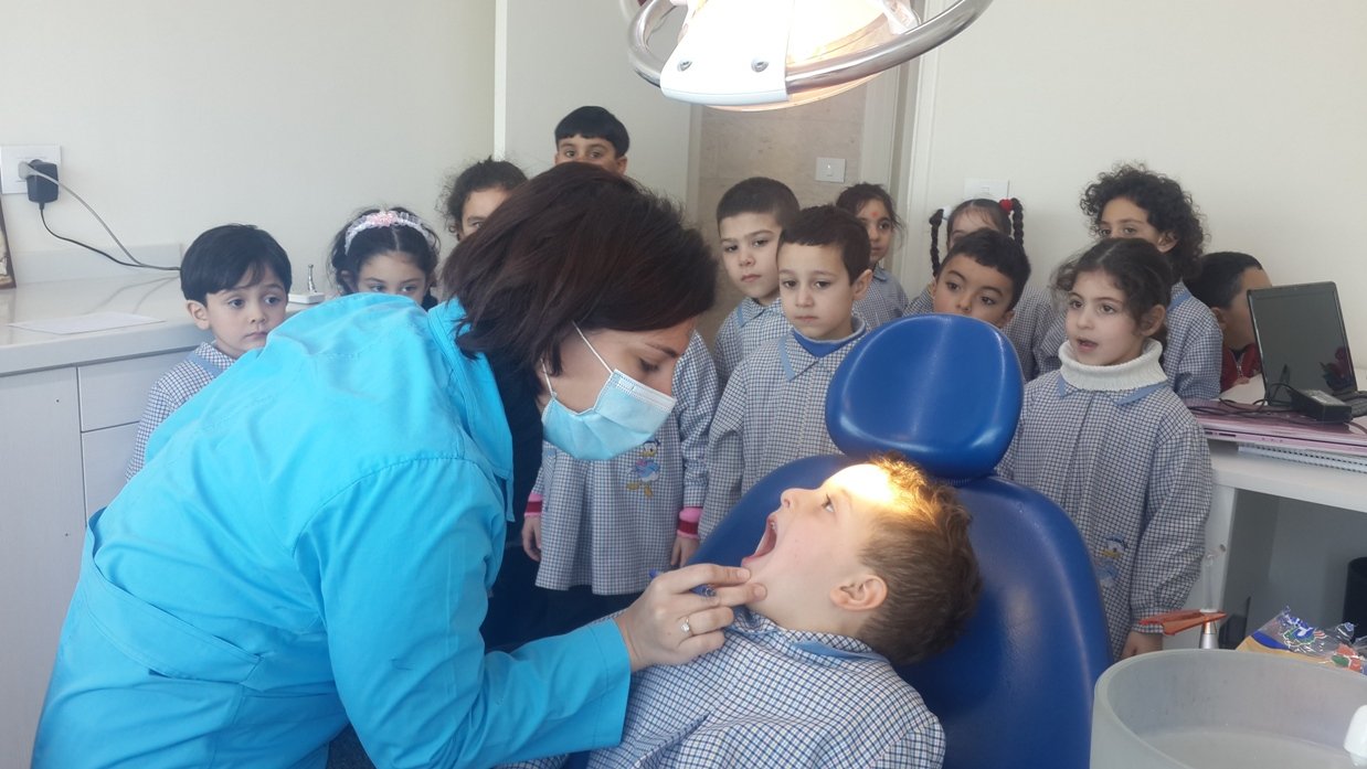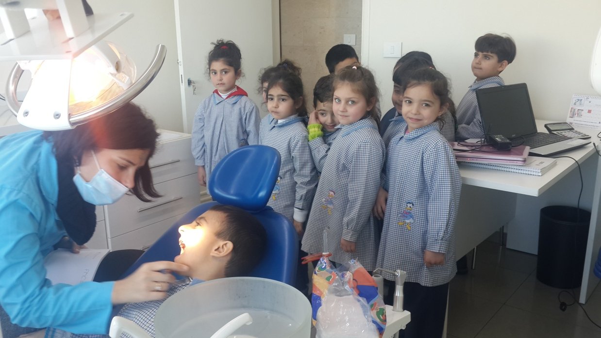 Les élèves des classes de EB2 A et B et de 2ème jardin A et B sont allés le lundi 16 février 2015 chez la dentiste Dr. Racha Srouji à Fanar.