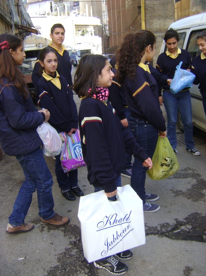 Une 2ème rencontre a eu lieu avec la famille que nous aidons le 8 février 2015. Les classes de EB5 A et B ont préparé des lots alimentaires que les élèves avaient apportés à l’école.