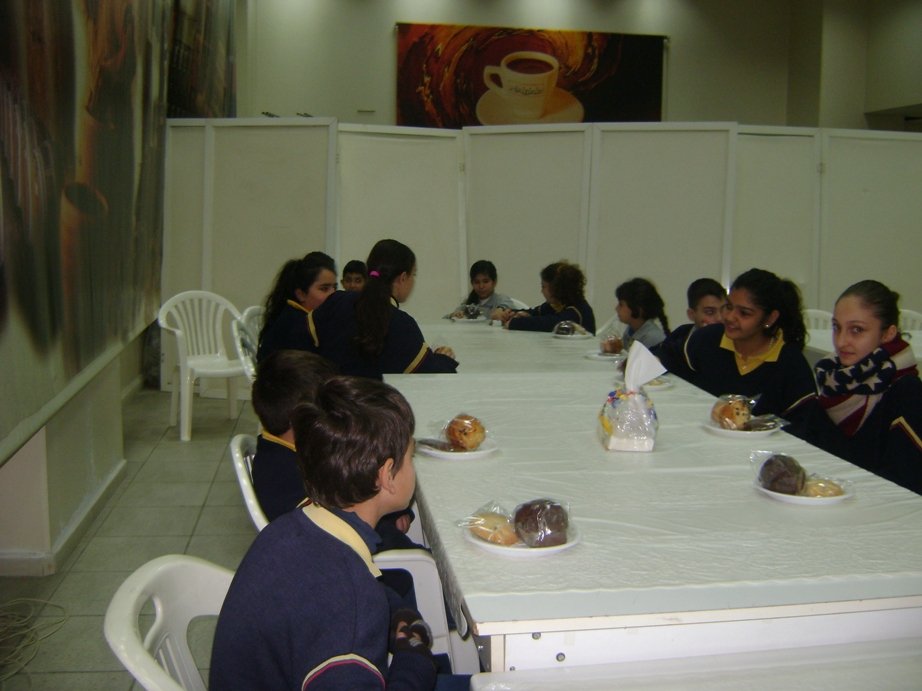 Ils ont pris un petit dessert, puis ils ont assisté à un documentaire sur l’histoire du café. Ensuite ils sont entrés à l’usine voir fonctionner les machines .